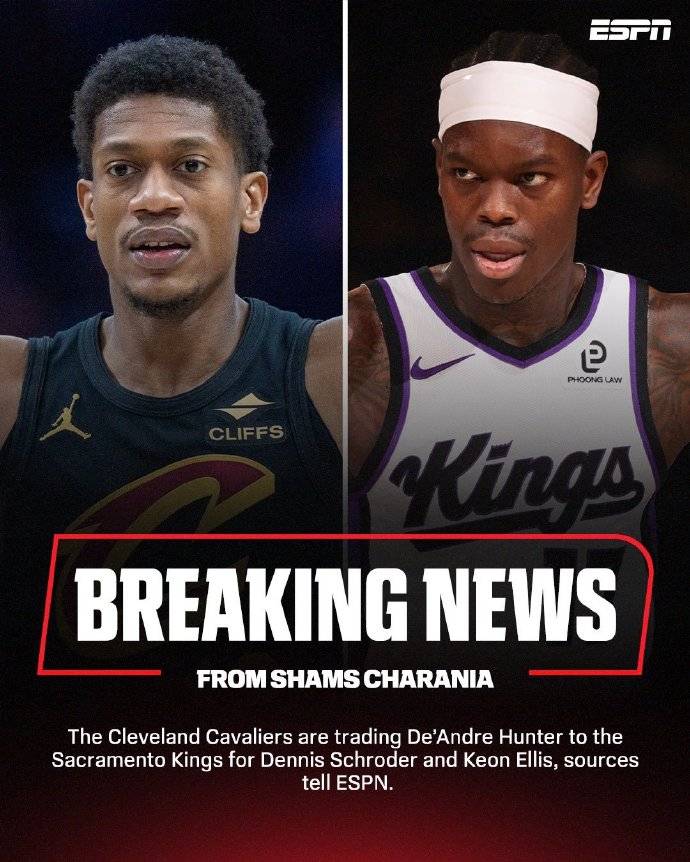 北京时间2月1日消息,据知名记者Shams报道,骑士队与国王队完成交易,亨特被骑士队送到了国王队,换来施罗德和埃利斯。据ESPN报道称,这笔交易还涉及公牛队,他们将得到国王队前锋沙里奇和两个未来次轮选秀权。